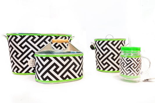 Utensil Caddy - GREEN GEOMETRIC / DOTS (CLEARANCE)