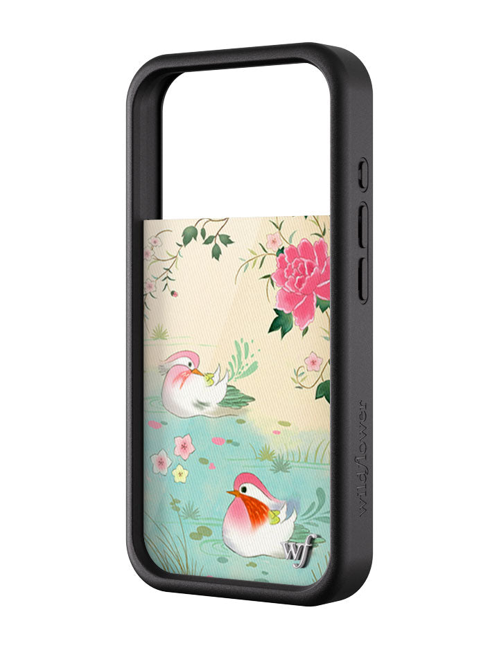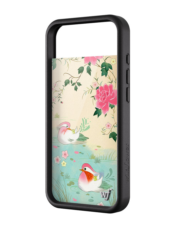 Drift into a dreamy escape with our Lovers Lagoon iPhone case, where two graceful lovebirds float serenely in a pastel-hued pond. The soft, watercolor palette and ethereal details evoke a timeless romance — sweet, serene, and poetic. This heartwarming limited edition case is for dreamers and lovers alike.