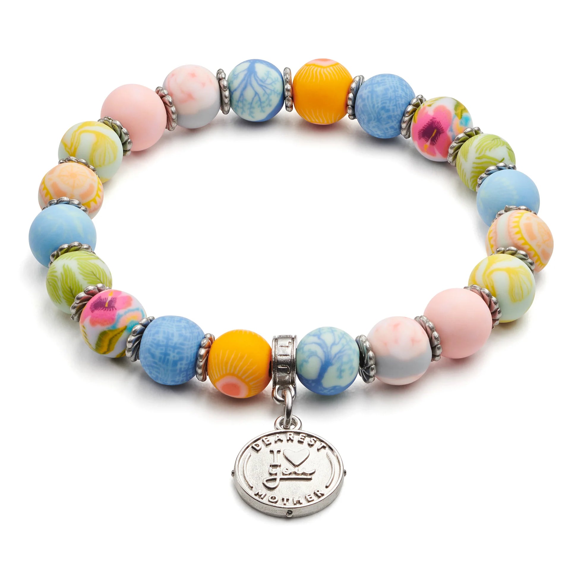 - Handcrafted 8mm polymer clay beads and a unique charm on a durable 1.2mm elastic cord