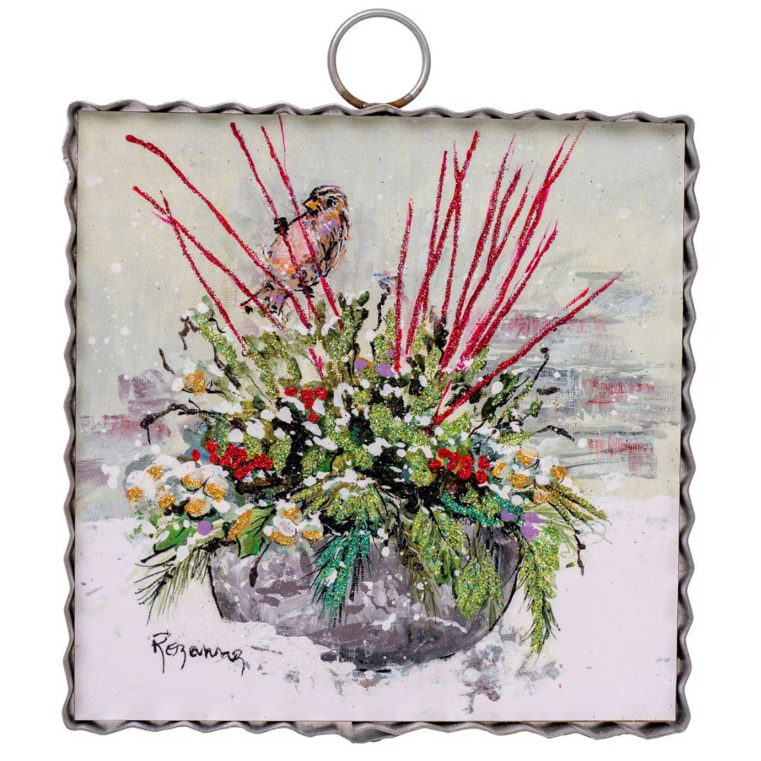 - Mix and match mini-art with a wide variety of bases (sold separately) - OR - hang on a hook - OR - stand item on counter, shelf, mantle, etc.